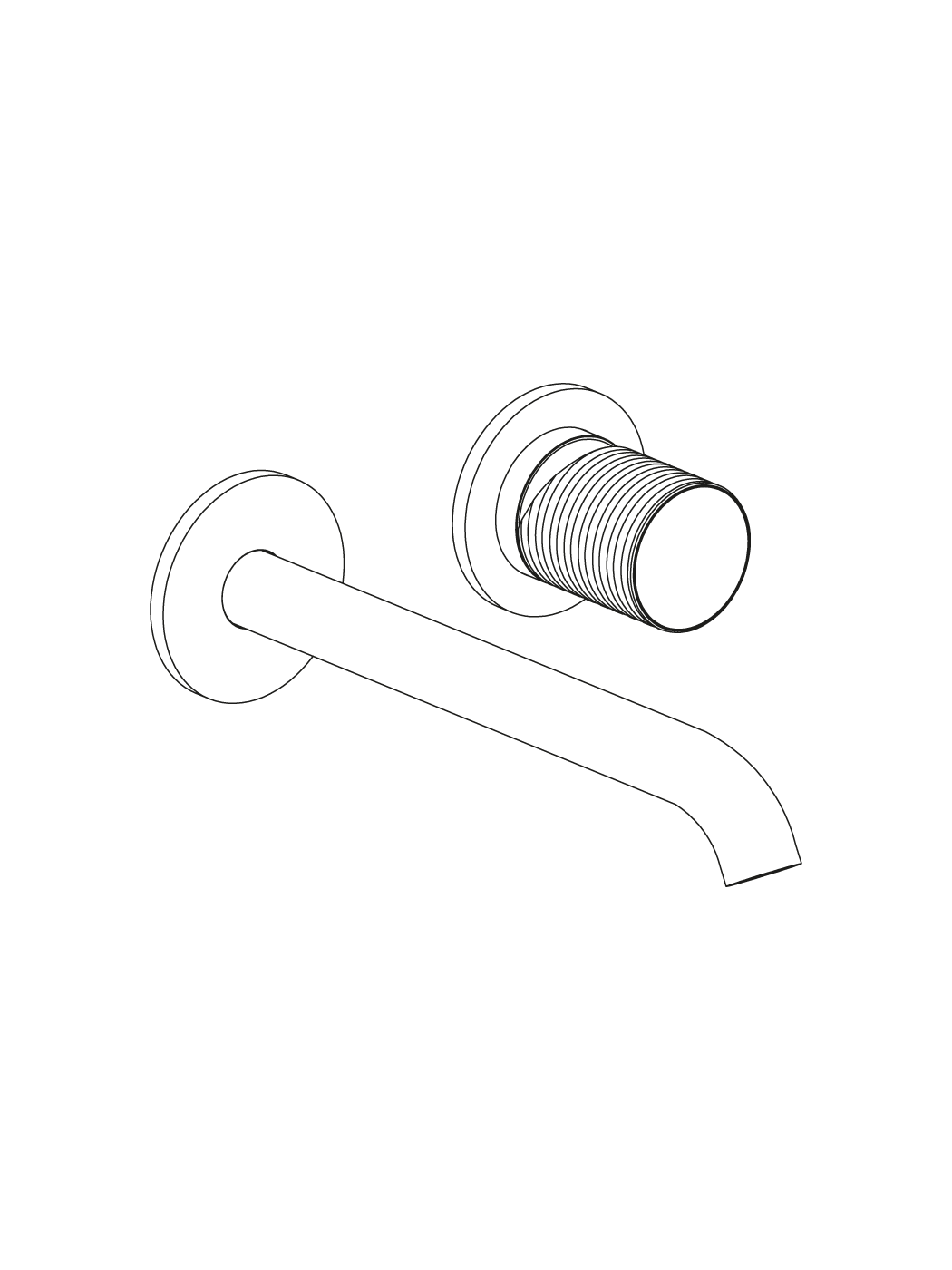 Una semplice maniglia cilindrica impreziosita da un motivo rigato. Eleganza e movimento per una collezione morbida e sinuosa.