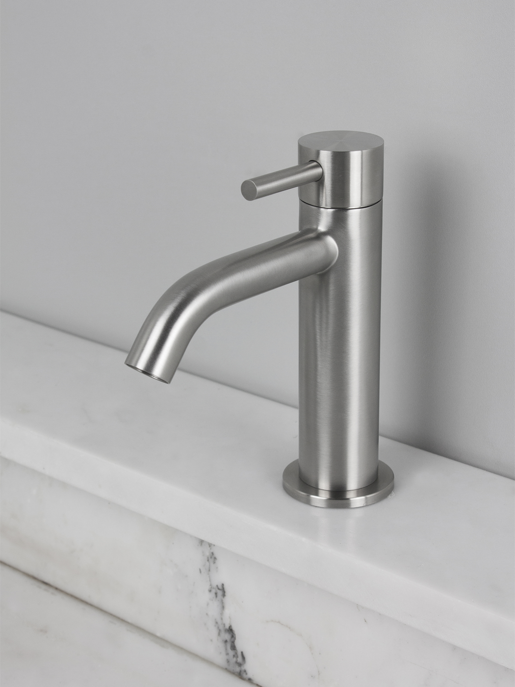 Cold water washbasin Ø34mm inox 316L W/O WASTE Spout l. 13cm with anti limestone aerator M16,5×1 G3/8” inox flexible hose