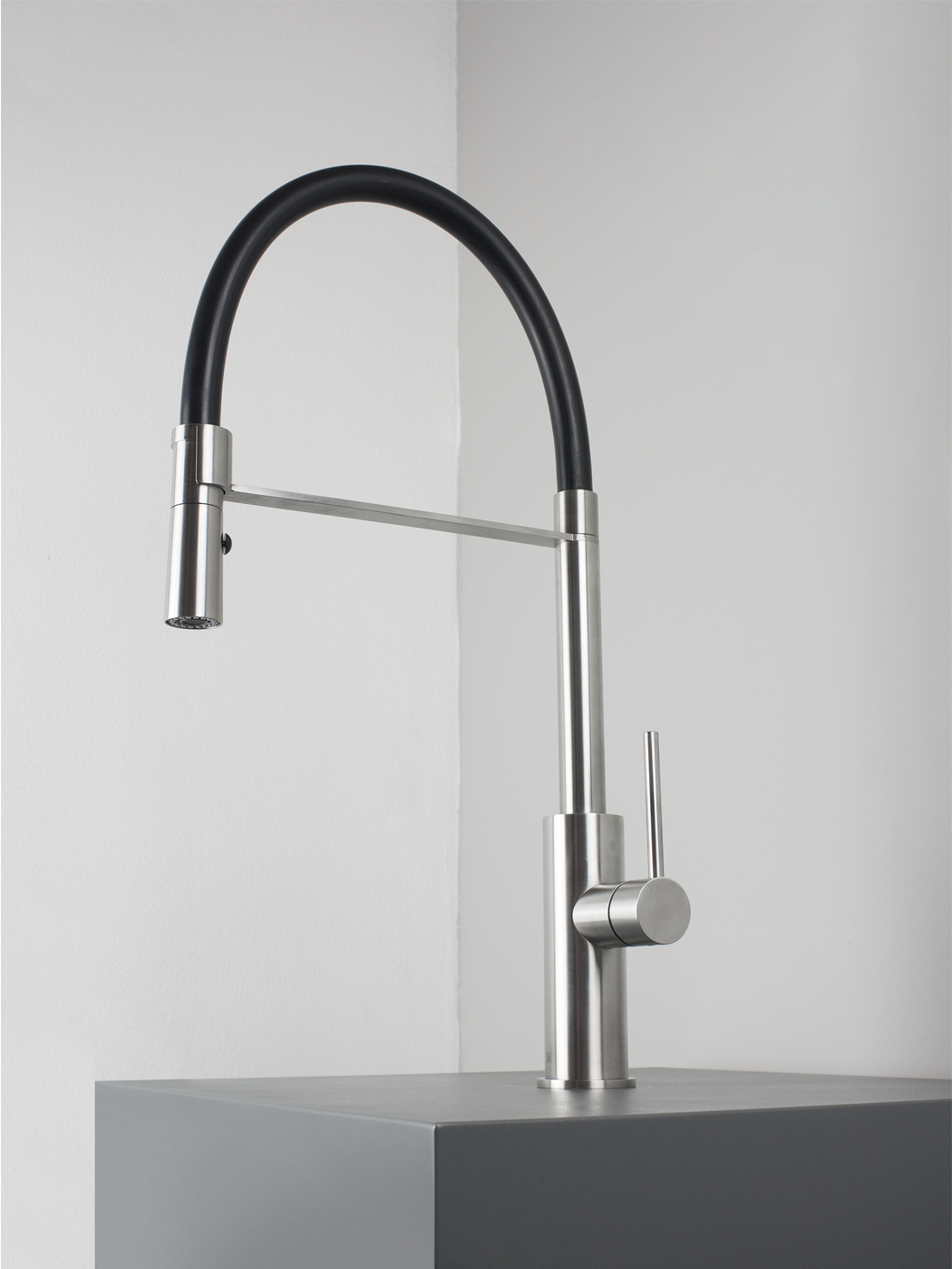 Miscelatore cucina inox 316L Canna tonda flessibile rivestita in silicone Doccetta estraibile a 2 getti anticalcare Flessibili di collegamento G3/8”