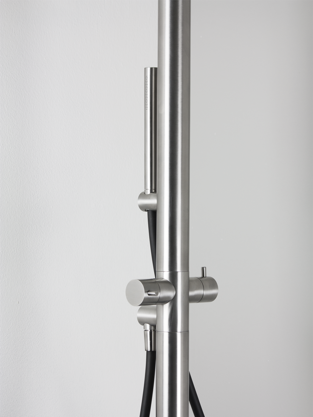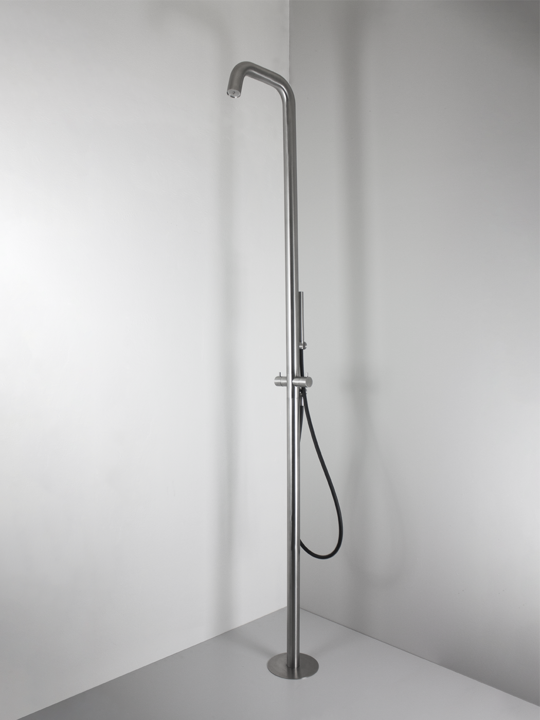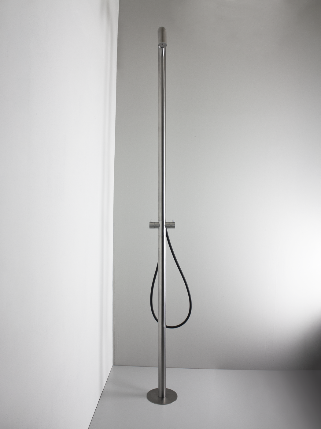 Colonna doccia da pavimento Ø50mm inox 316L Miscelatore progressivo e deviatore rotativo 2 vie Doccetta “full inox“ con flessibile l. 160cm