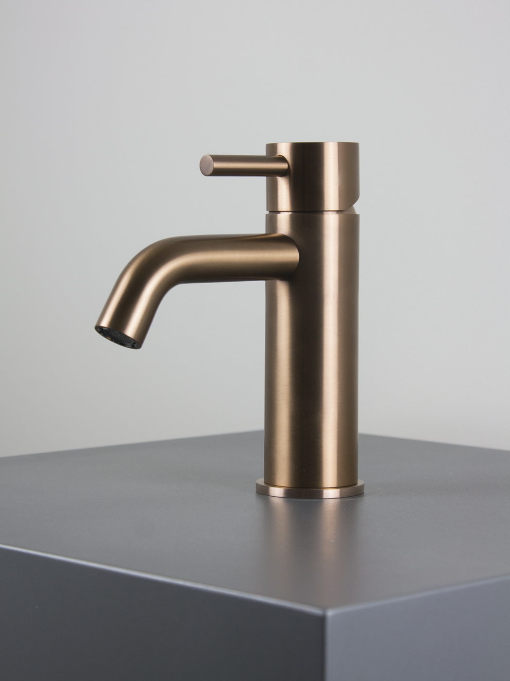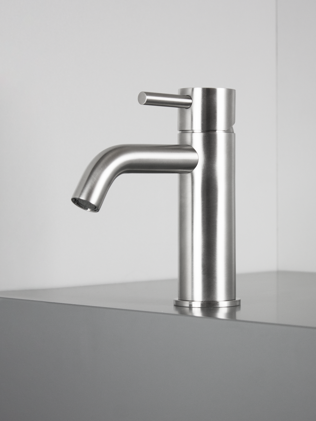 Miscelatore lavabo Ø45mm inox 316L S/SCARICO Bocca l. 12cm con aeratore anticalcare M18,5×1 Flessibili di collegamento G3/8”