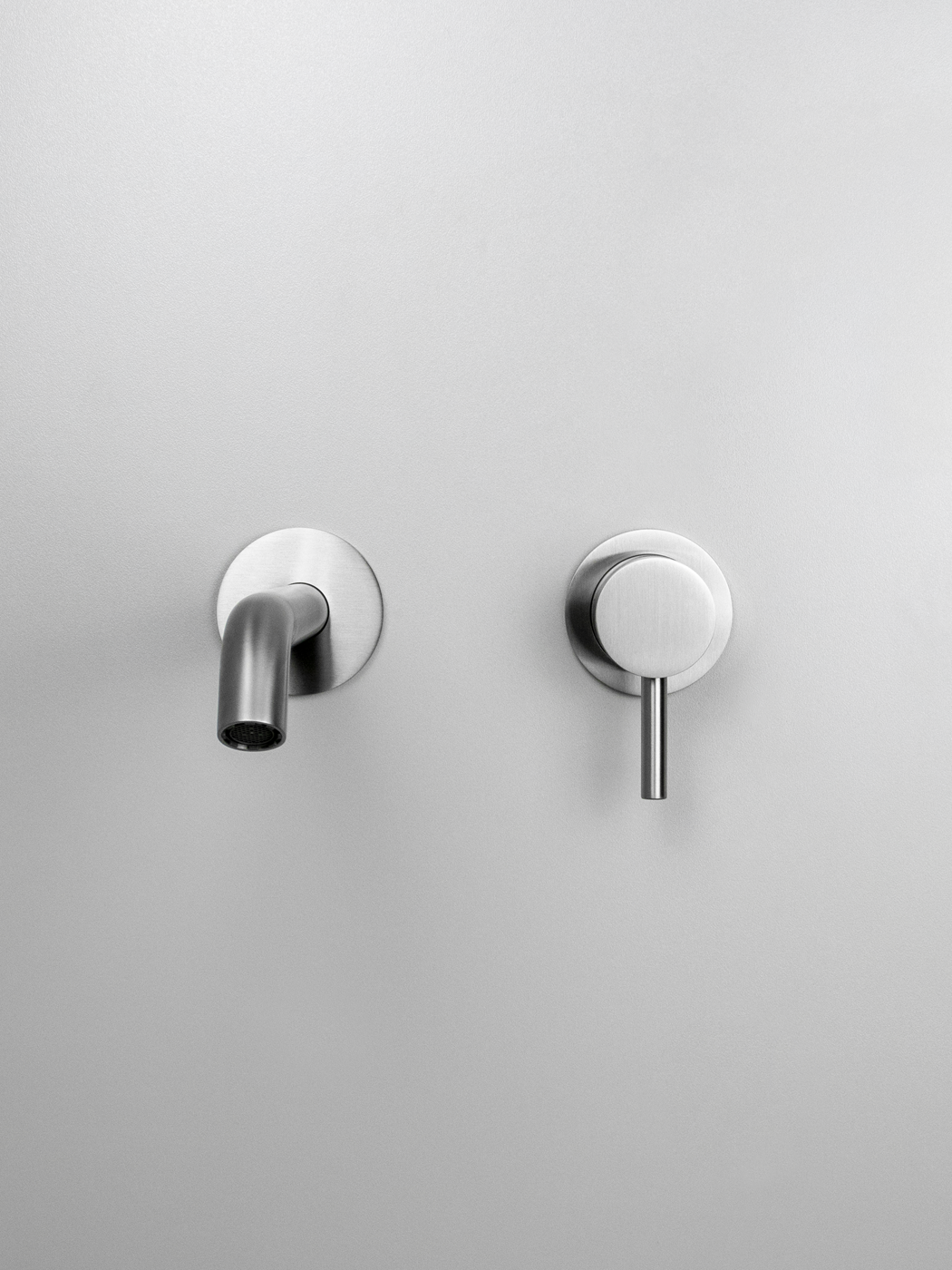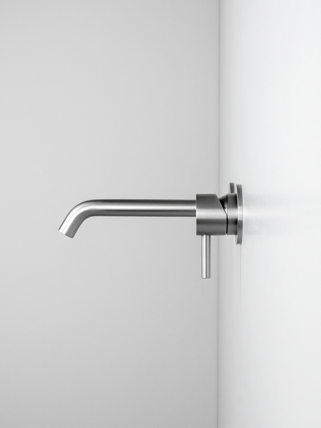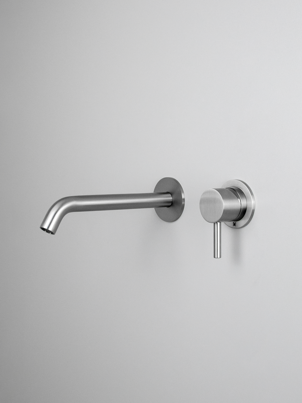 Miscelatore lavabo incasso Ø45mm inox 316L Bocca l. 21cm con aeratore anticalcare M18,5×1 Connessione G1/2”