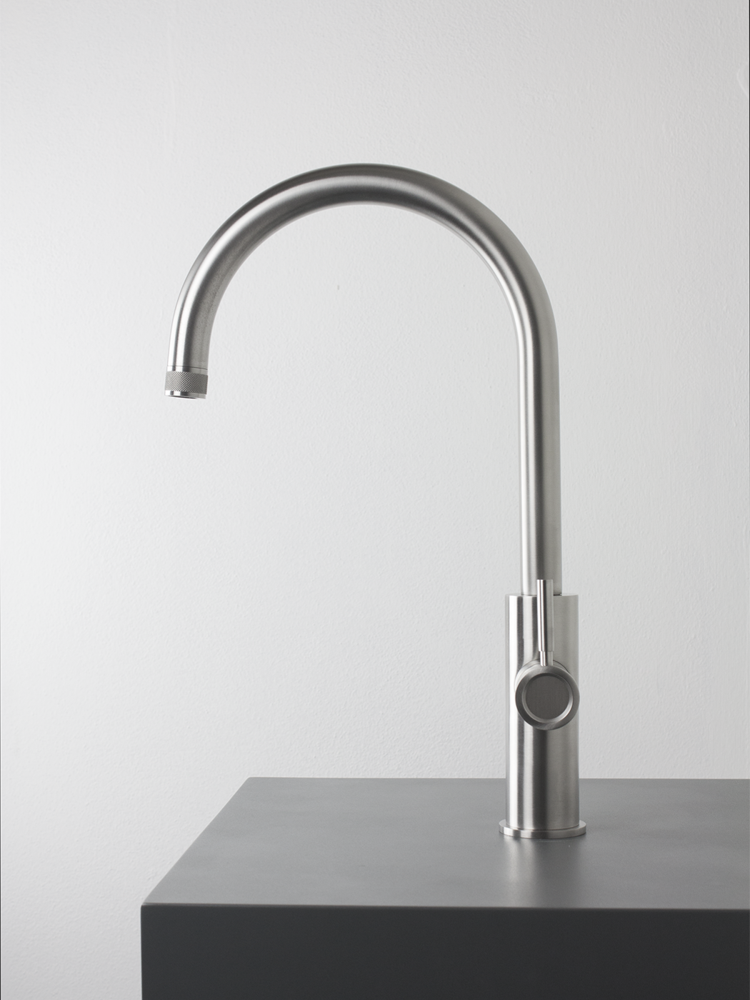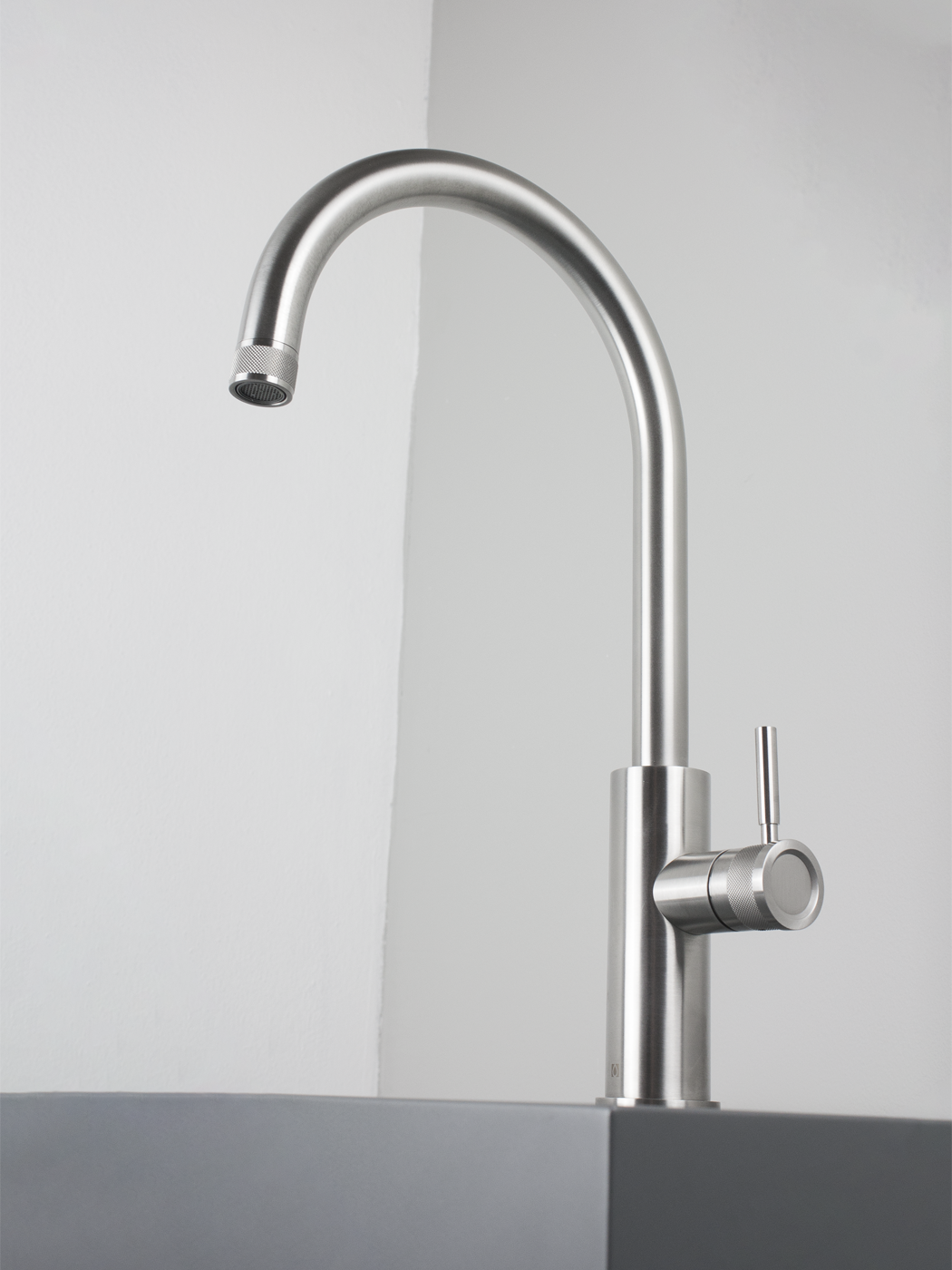 Miscelatore cucina inox 316L Canna tonda con aeratore anticalcare Flessibili di collegamento G3/8”