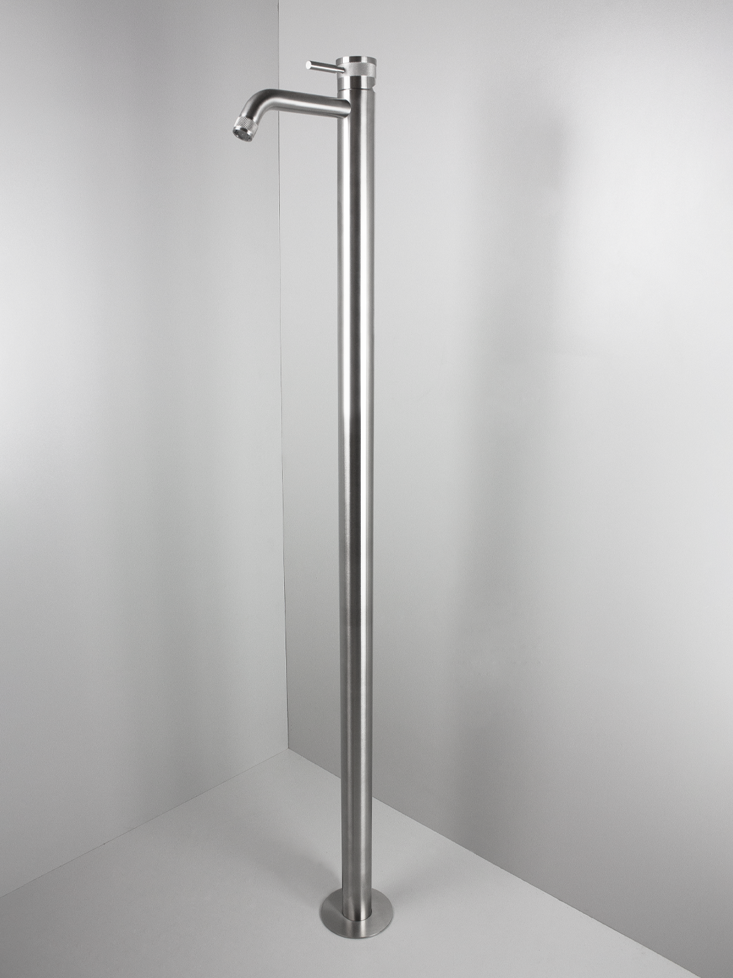 Miscelatore lavabo a pavimento Ø45mm inox 316L Bocca l. 17cm con aeratore anticalcare M18,5×1 Connessione G1/2”