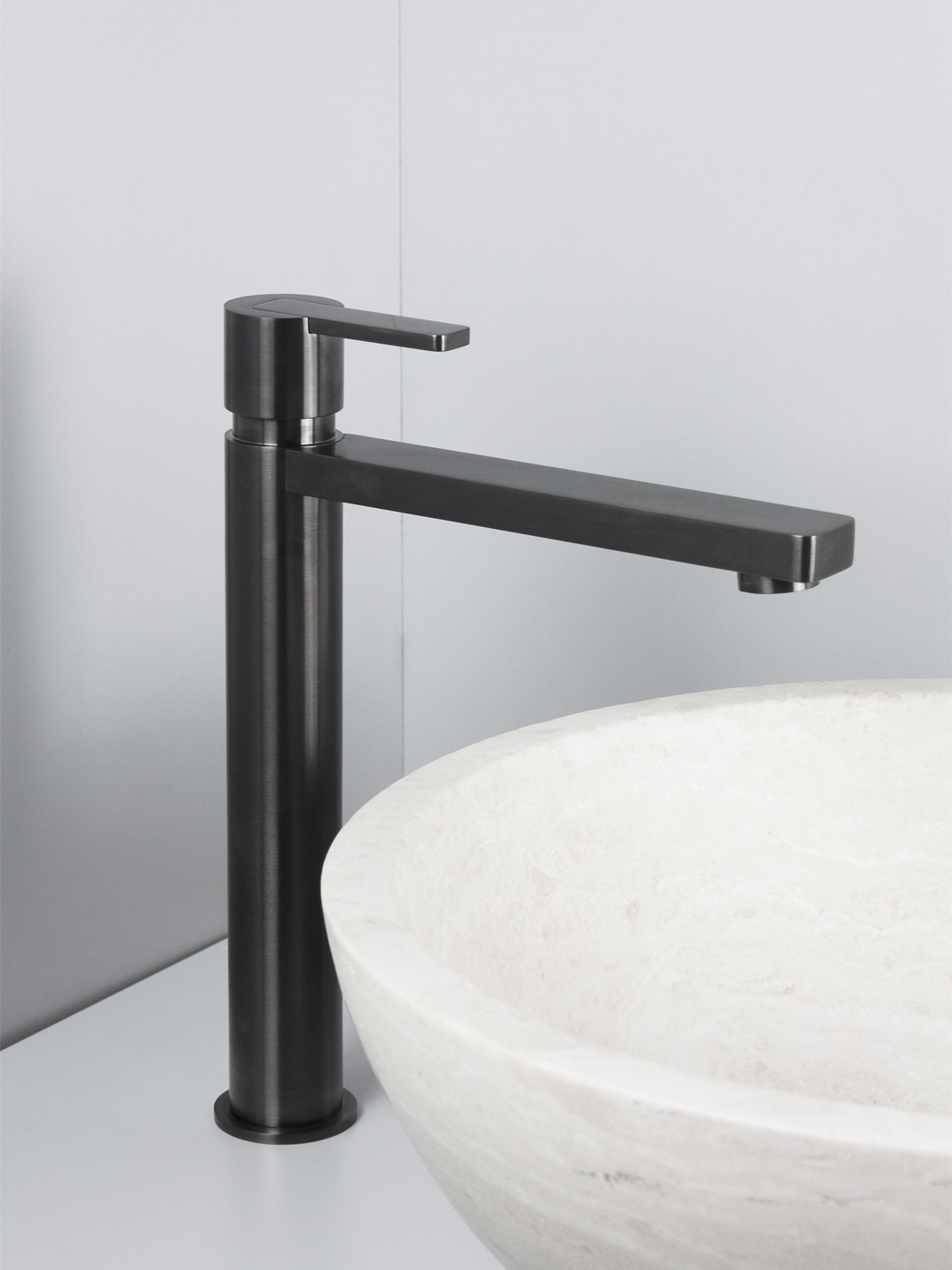 Miscelatore lavabo alto Ø40mm inox 316L S/SCARICO Bocca l. 18cm con aeratore anticalcare M24x1 Flessibili di collegamento G3/8”