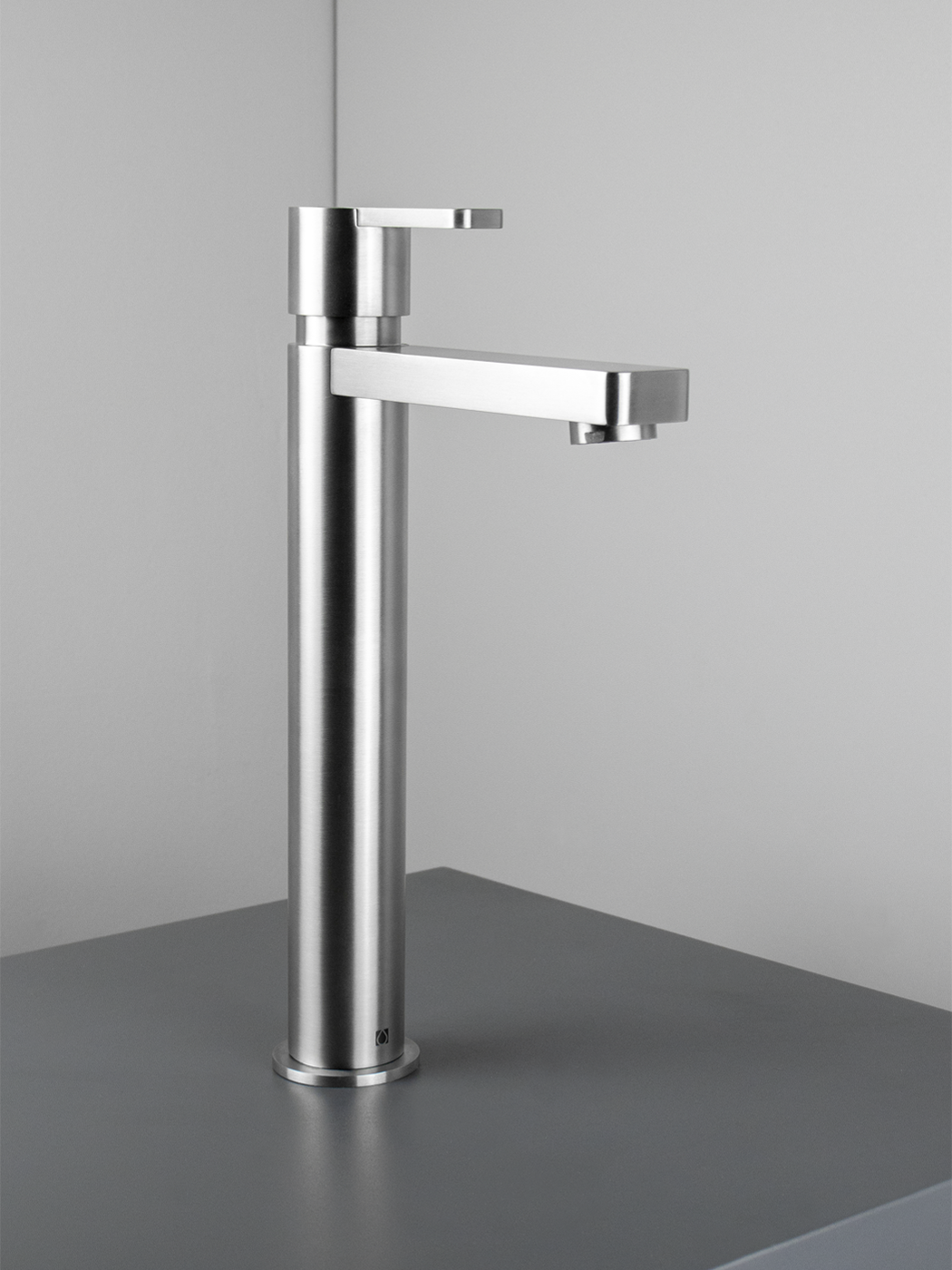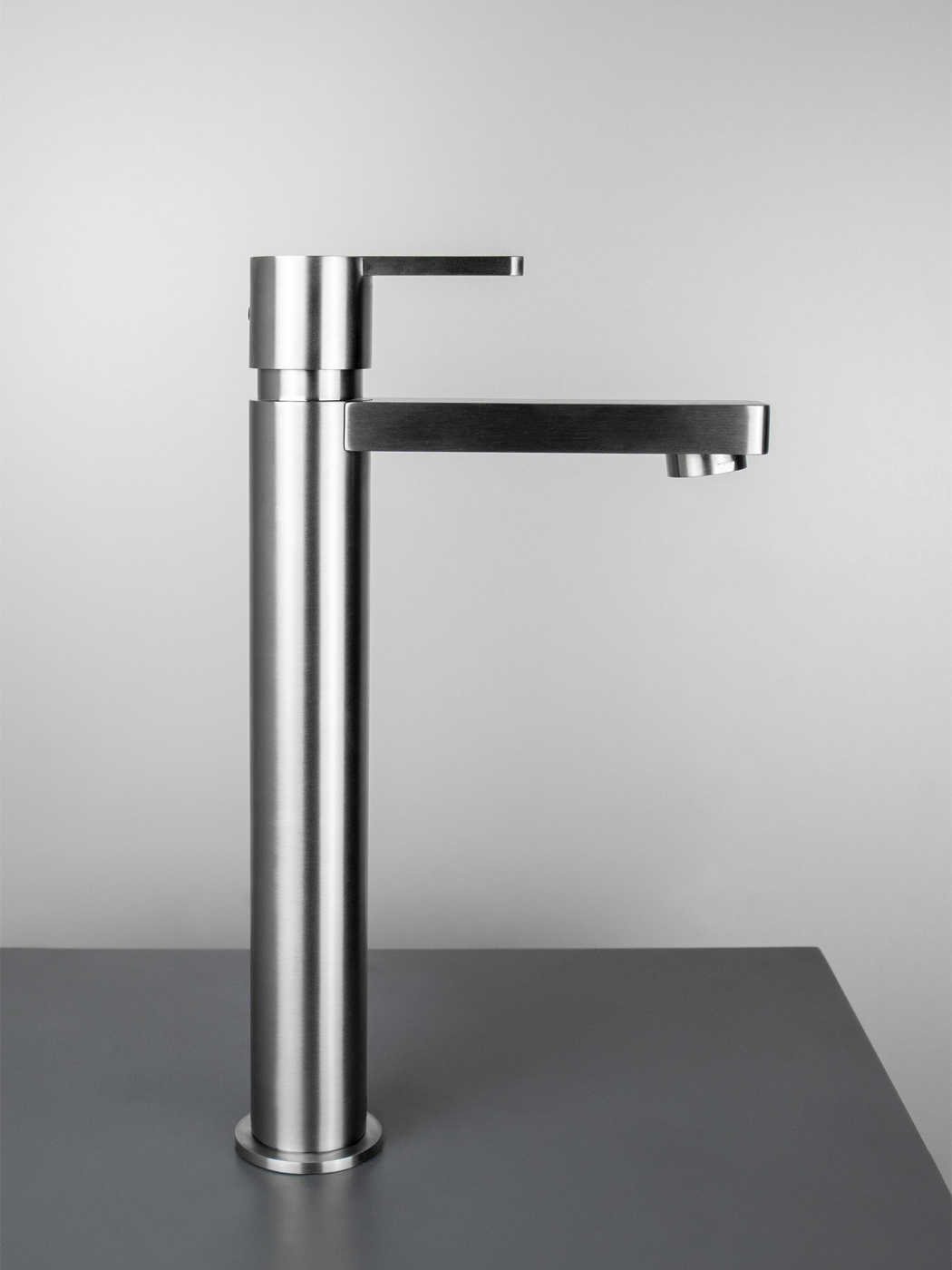 Miscelatore lavabo alto Ø40mm inox 316L S/SCARICO Bocca l. 12cm con aeratore anticalcare M24x1 Flessibili di collegamento G3/8”