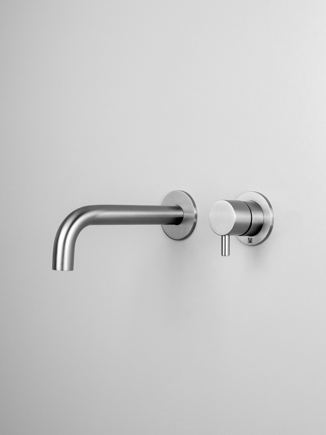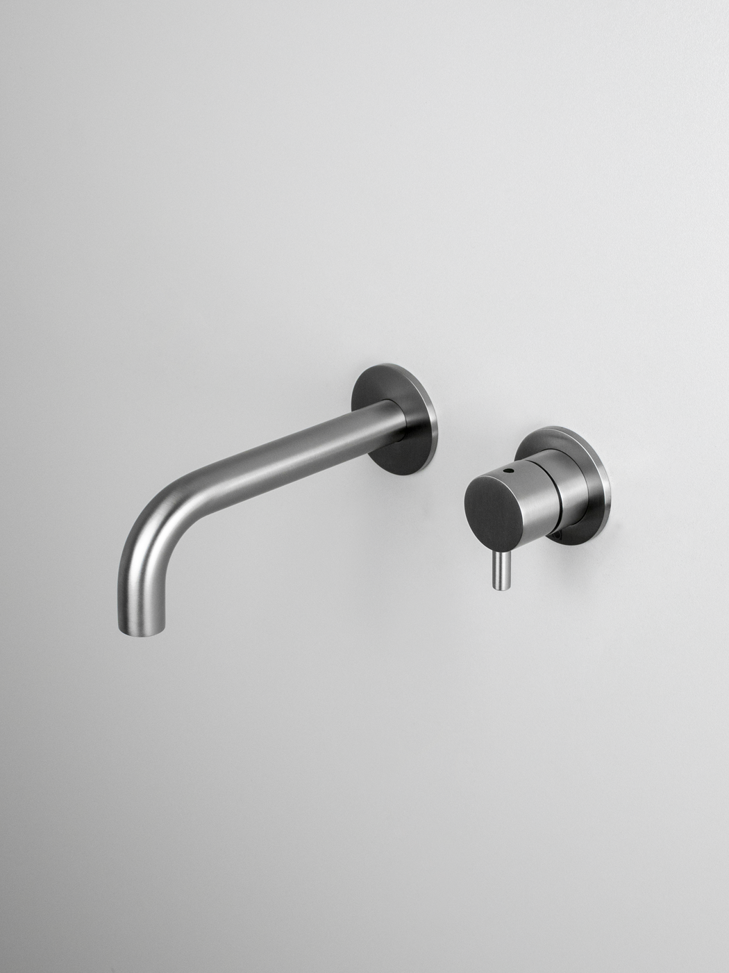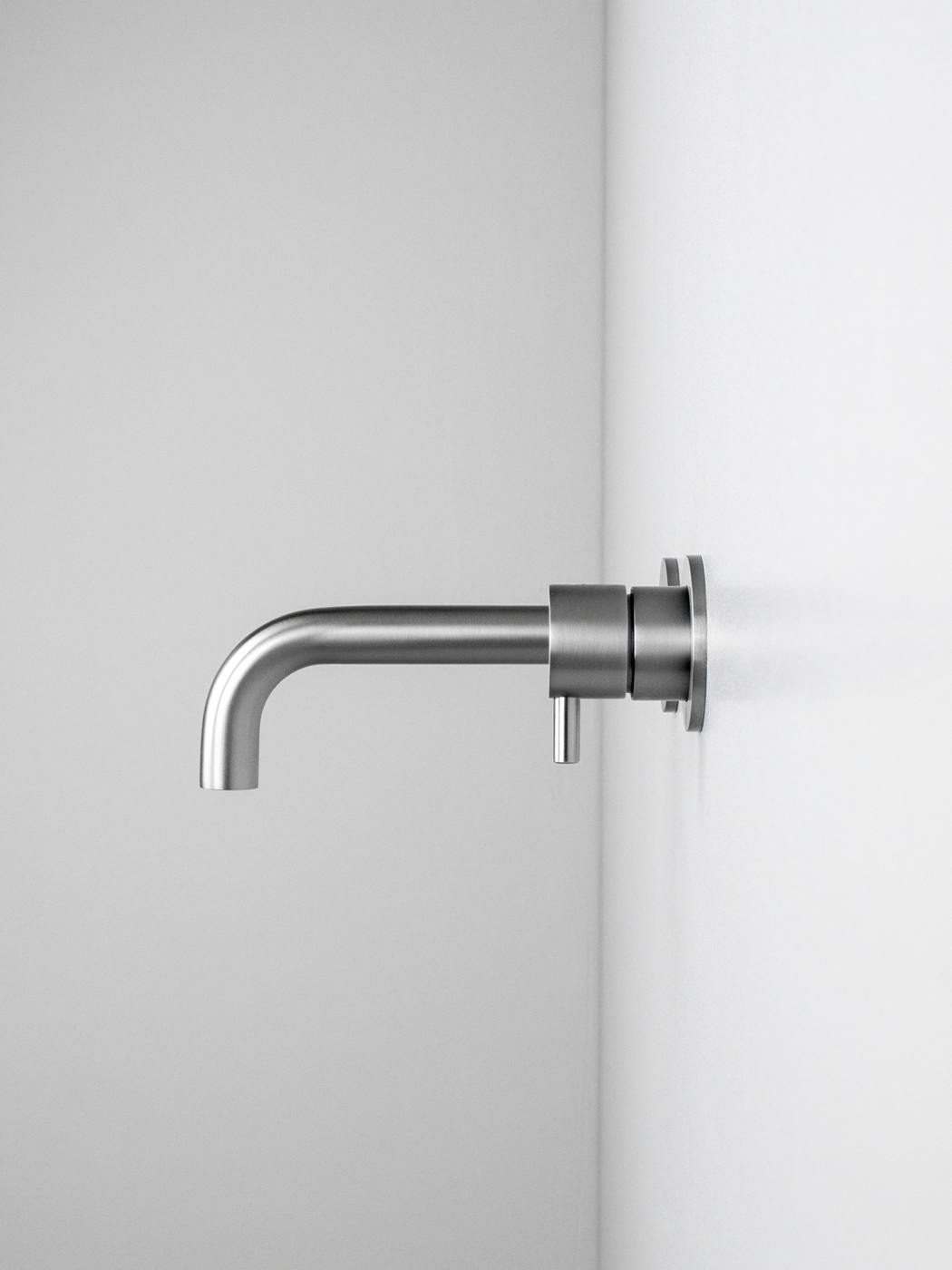Miscelatore lavabo incasso Ø34mm inox 316L Bocca l. 15cm con aeratore anticalcare M16,5×1 Connessione G1/2”