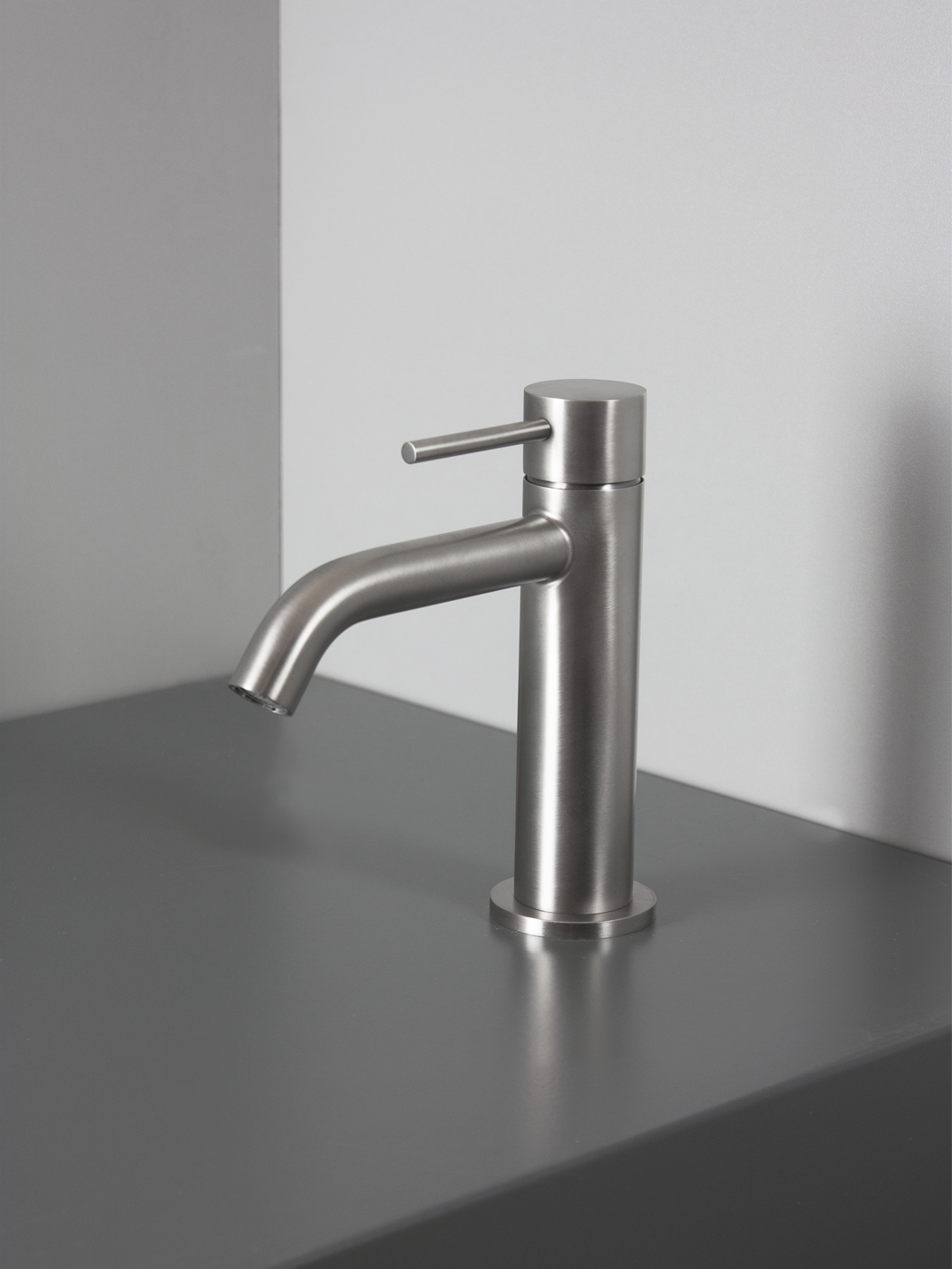 Miscelatore lavabo Ø34mm inox 316L S/SCARICO Bocca l. 13cm con aeratore anticalcare M16,5×1 Flessibili di collegamento G3/8”