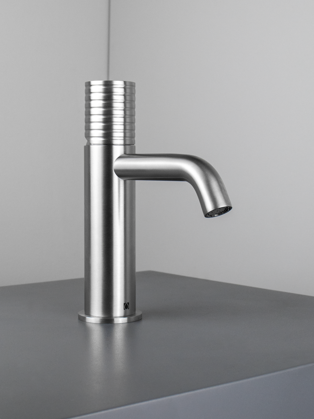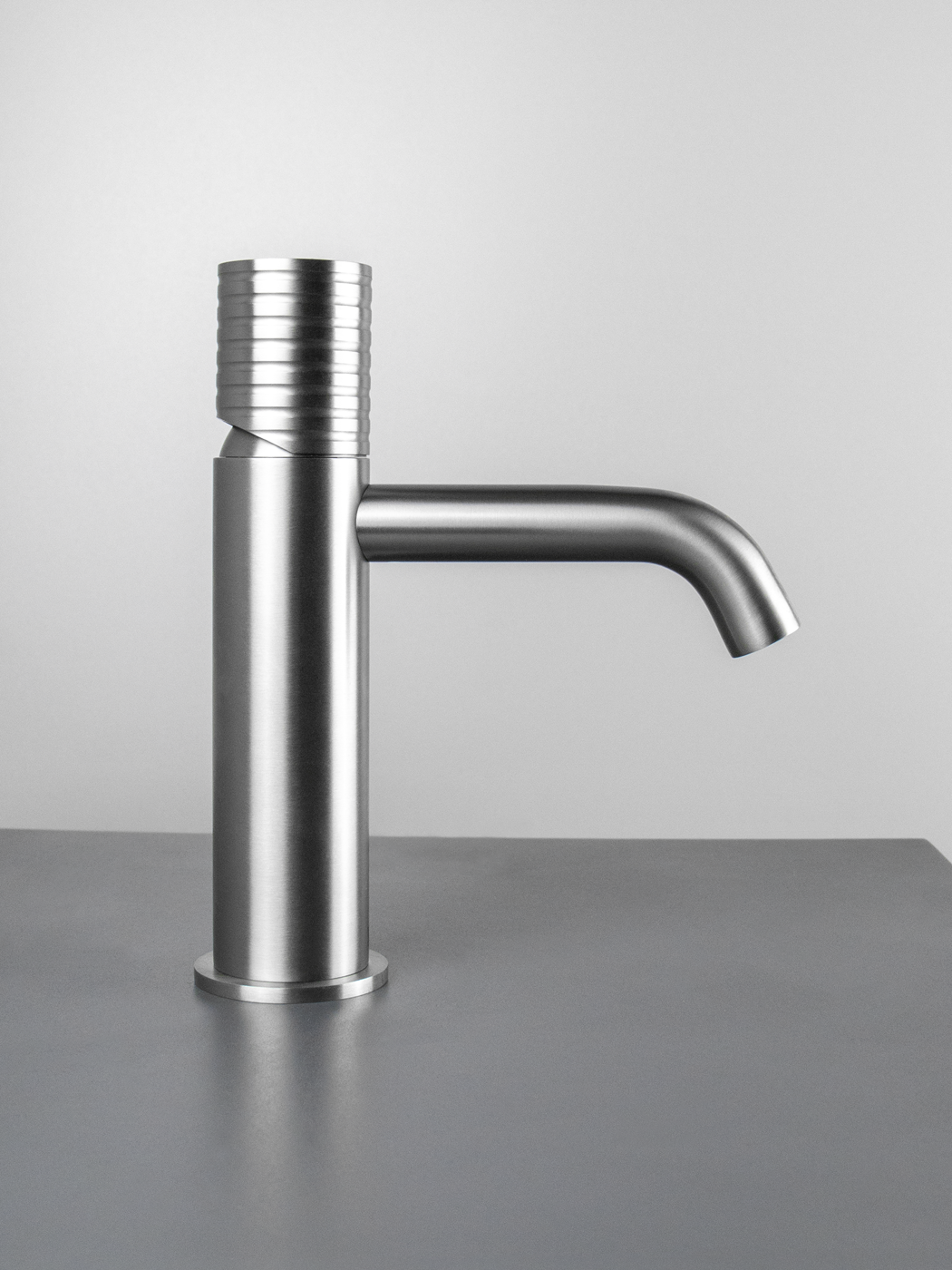 Miscelatore lavabo Ø40mm inox 316L S/SCARICO Bocca l. 12cm con aeratore anticalcare M16,5×1 Flessibili di collegamento G3/8”