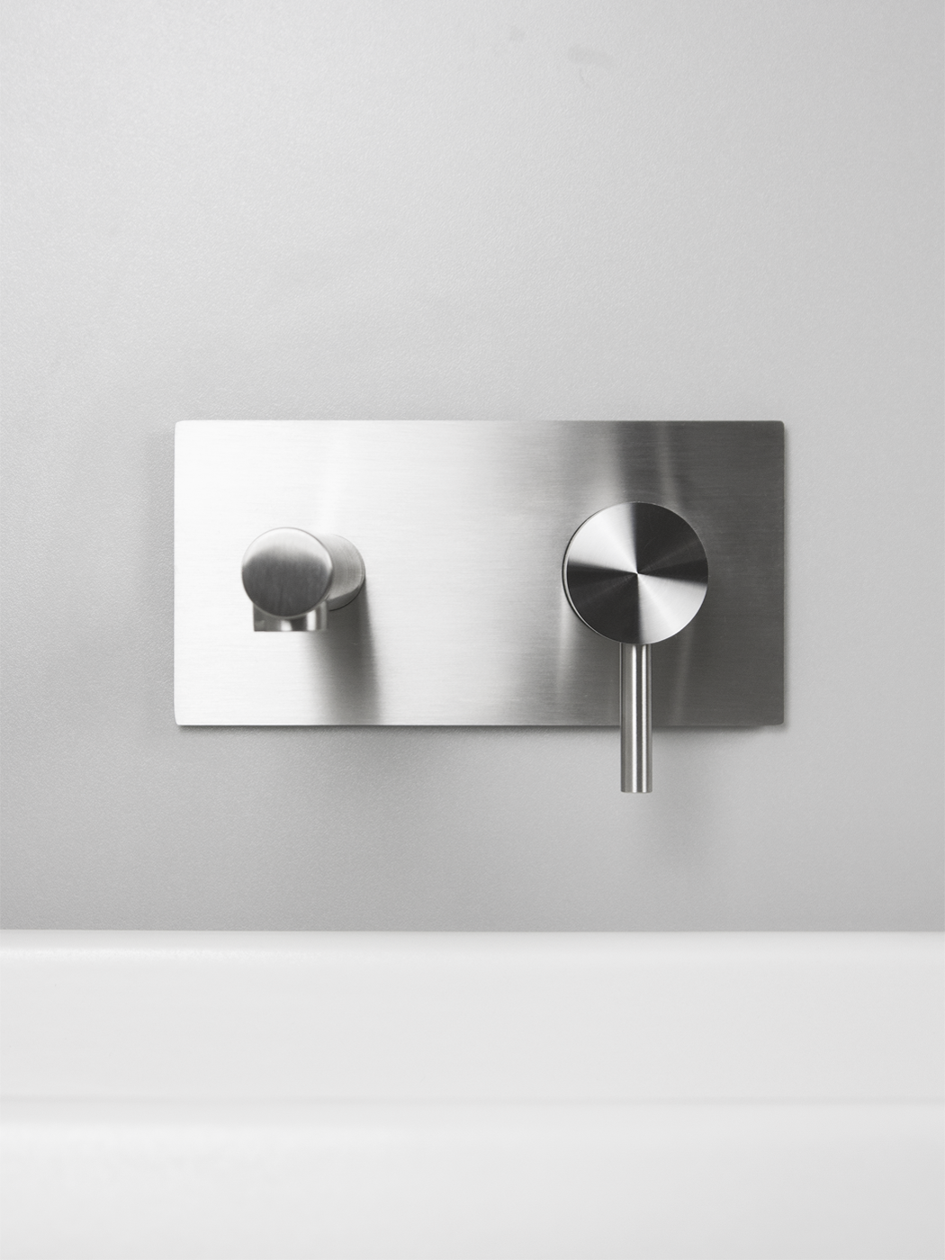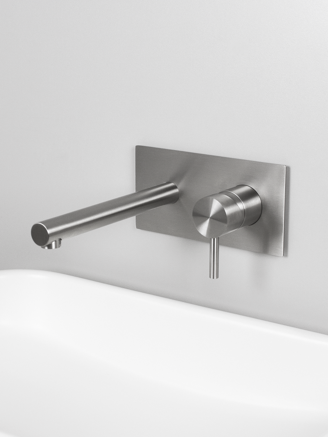 Ankastre lavabo bataryası Ø45mm inox 316L Çıkış ucu 21cm kireç önleyici perlatörlü M21x1 G1/2” bağlantılı